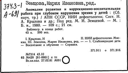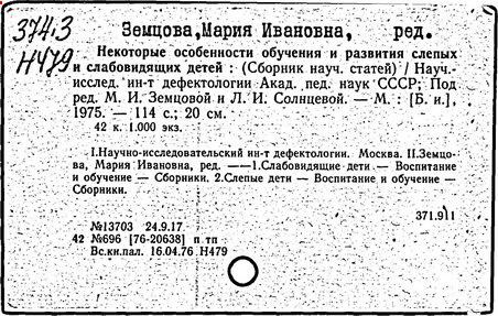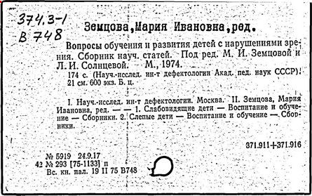 слепых и слабовидящих детей : сб. науч. ст.- М., 1975.