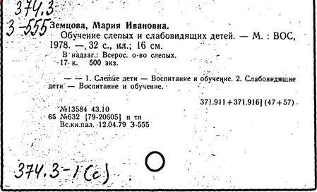 слепых / В.П.Ермаков, М.И. Земцова // Обозрение Европейских слепых.