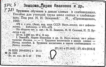 М.И.Земцова // Трудовое обучение в школе слепых и слабовидящих.