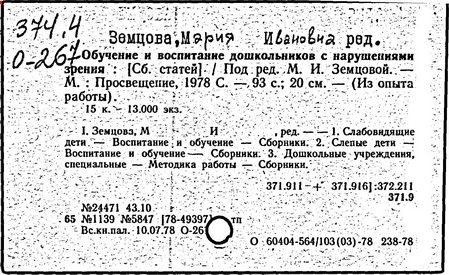 слабовидящих детей / М.И.Земцова // Шестая научная сессия по