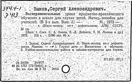 сурдопедагогике [Текст]/ Т. С. Зыкова // ВОСПИТАНИЕ И ОБУЧЕНИЕ
