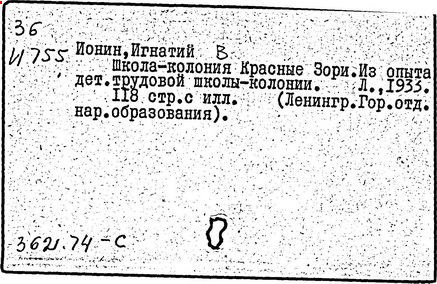В сентябре 1937 г. Ионин и группа его сотрудников были необоснованно репрессированы. Ионин умер в заключении. Реабилитирован в 1990 г. Школа-колония просуществовала до сентября 1941 г., была переведена в Ленинград, затем эвакуирована в Ярославскую область.