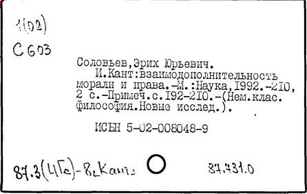 и европ. яз./ И. Кант; Пер. Н.О. Лосского; Рос. акад. наук, Ин-т