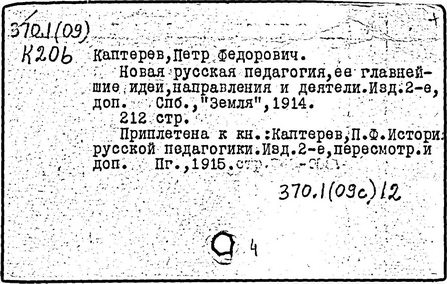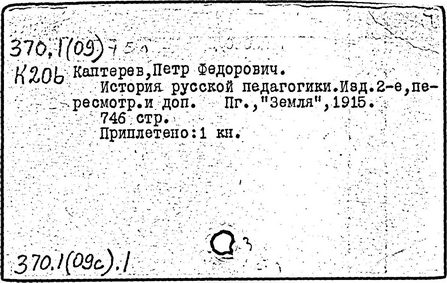 педагогических трудах П.Ф. Каптерева, [1849-1922 гг.]/