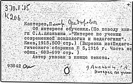 " Вестн. Воронеж. губпрофобра " , 1922 г., N 1]/ П.Ф. Каптерев;