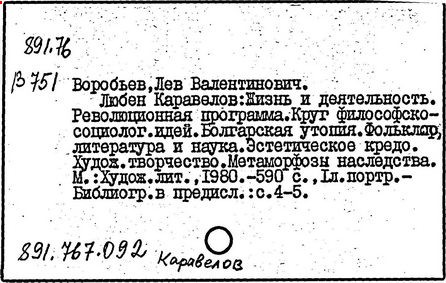Литература: Воробьев Л. Л. Каравелов. Мировоззрение и творчество. М., 1963; Чакъpов Н., Атанасов Ж. История на българското образование. София, 1963; Чакъров Н. Христоматия по история на образованието и педагогическата мисъл в Белгария. София, 1963; Конев И. Белетристът Каравелов. София, 1970.