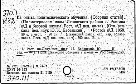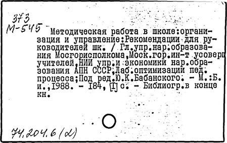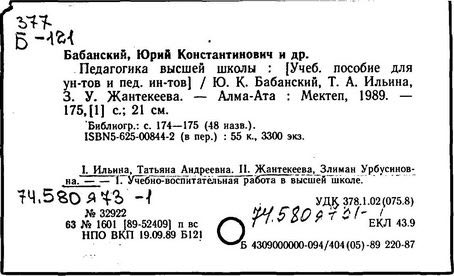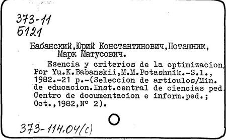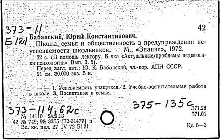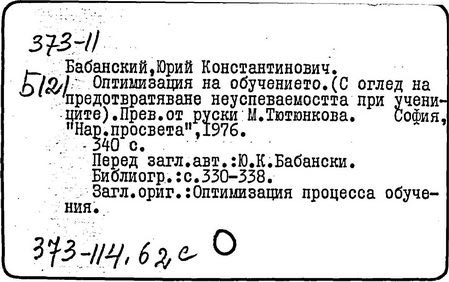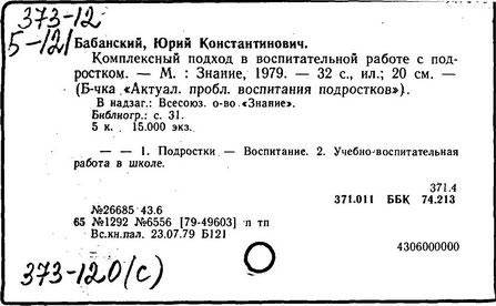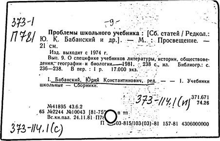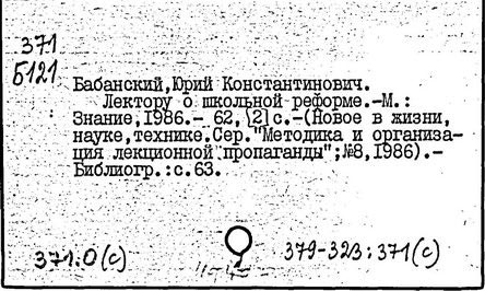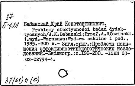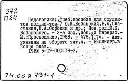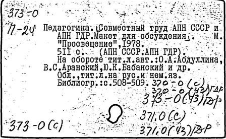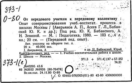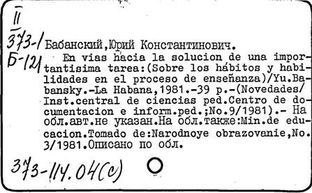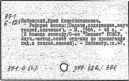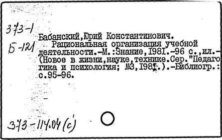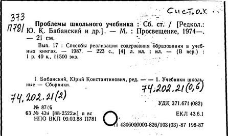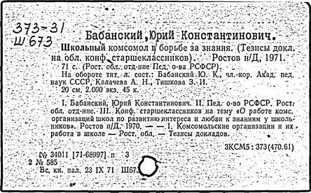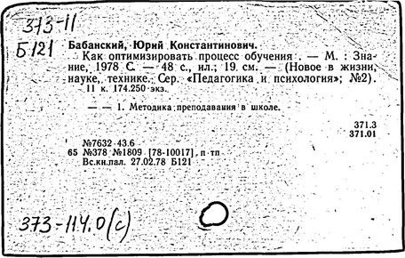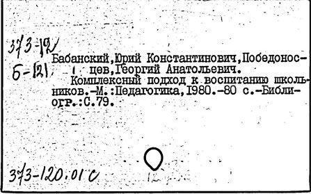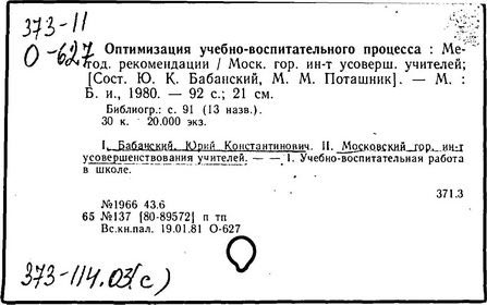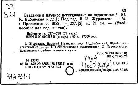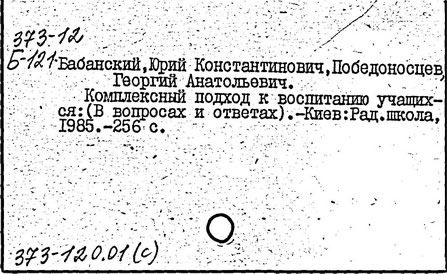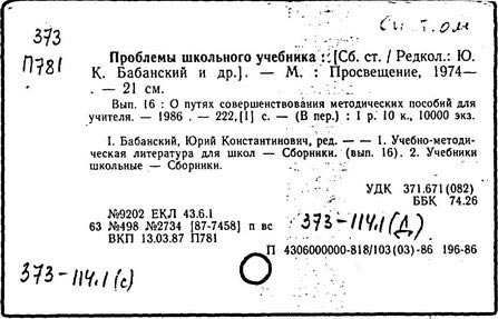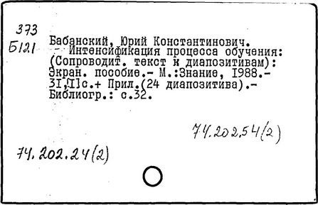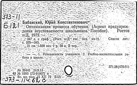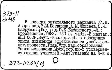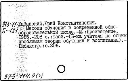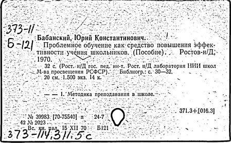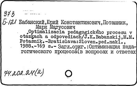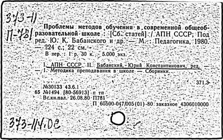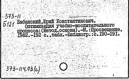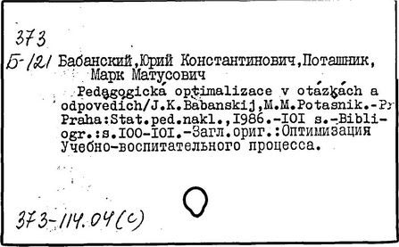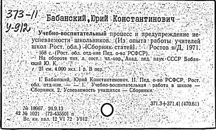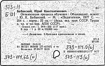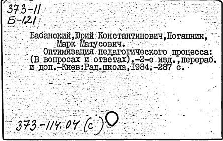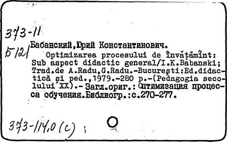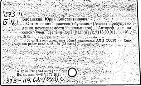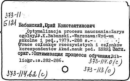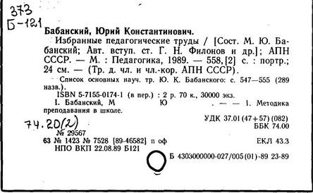 Бабанский, Ю. К. Избранные педагогические труды / [сост. М. Ю. Бабанский ; авт. вступ. ст. Г. Н. Филонов, Г. А. Победоносцев, А. М. Моисеев ; авт. коммент. А. М. Моисеев] ; Акад. пед. наук СССР. - М. : Педагогика, 1989. - 558, [2] с. : табл., 1 л. портр. - (Труды действительных членов и членов-корреспондентов Академии педагогических наук СССР).