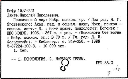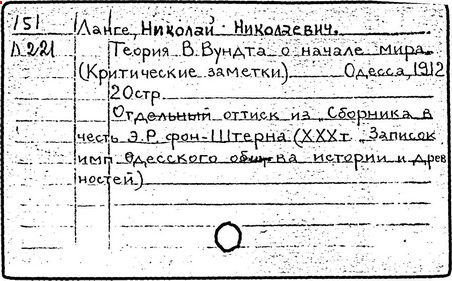 Литература: Тсилов Б. М., Основные идеи в психологических трудах H. H. Ланге. (К 100-летию со дня рождения), Вопросы психологии, 1958, № 6; Материалы конференции, посвященной 100-летию со дня рождения профессора H. H. Ланге (1858-1958 гг.), Од., 1958; Будилова Е. А., Борьба материализма и идеализма в русской психологической науке. (Вторая половина 19 - начало 20 вв.), М., 1960; Петровский А. В., Об основных направлениях в русской психологии начало 20 в., в книге: Из истории русской психологии, М., 1961.