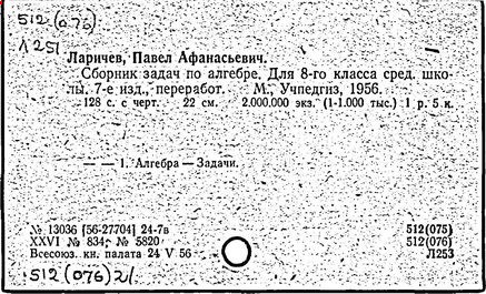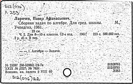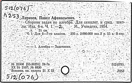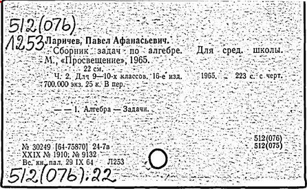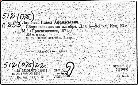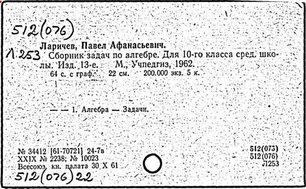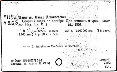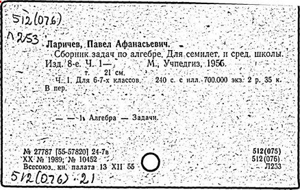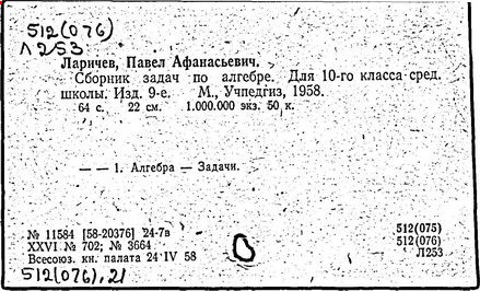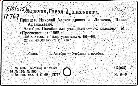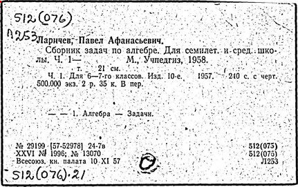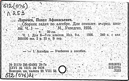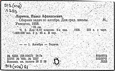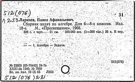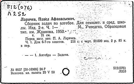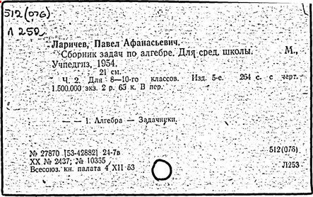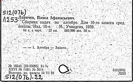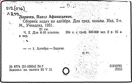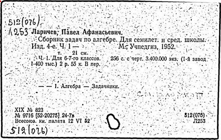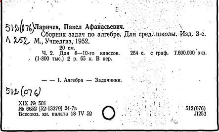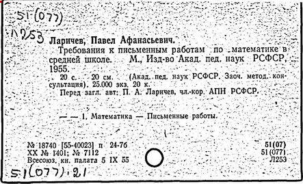 Литература: Новоселов С. И., П. А. Ларичев, Математика в школе, 1963, №3; Андронов И. К., Полвека развития школьного математического образования в СССР, М., 1967.