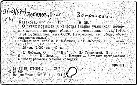 О. Лебедев и др. // Школ. обозрение. -2003. -N 2. -