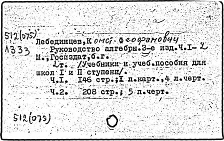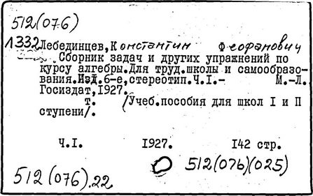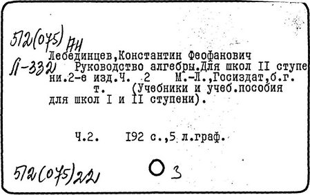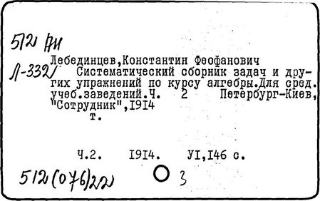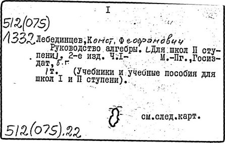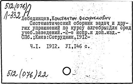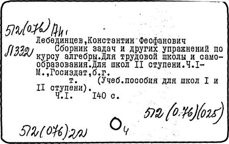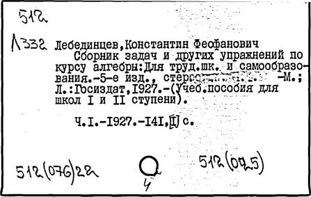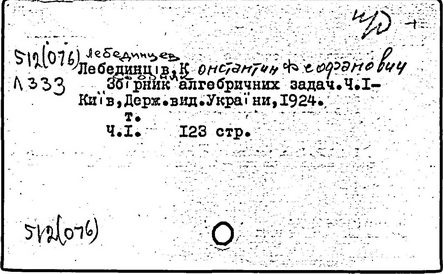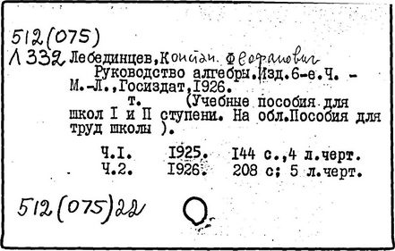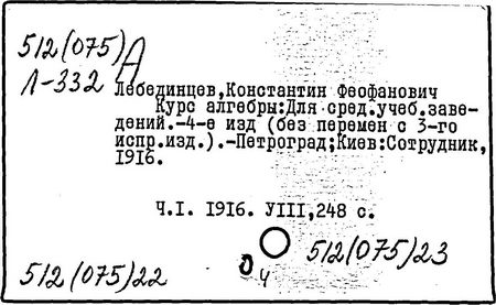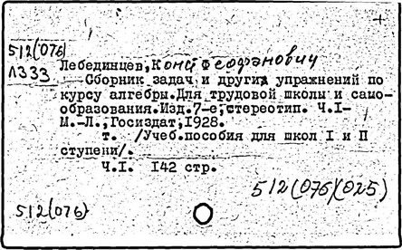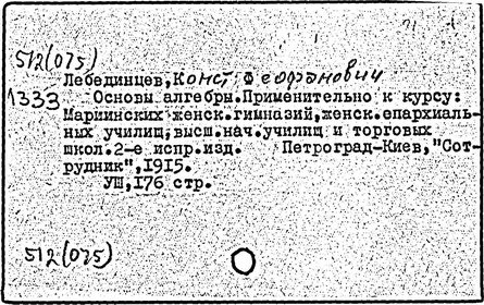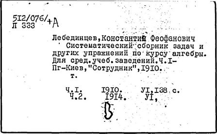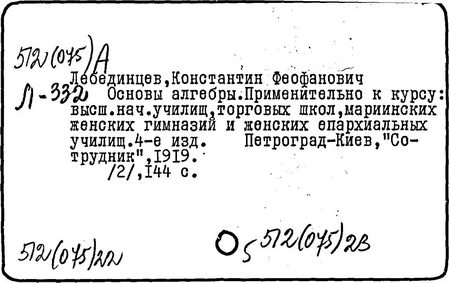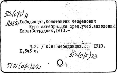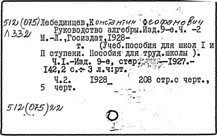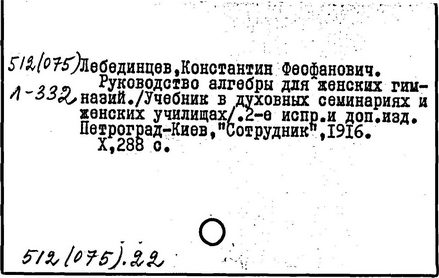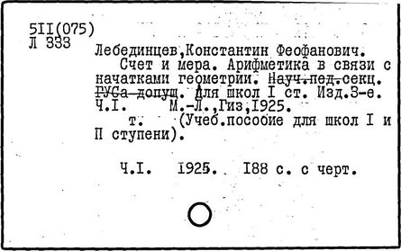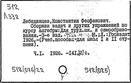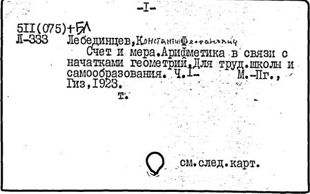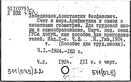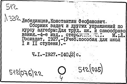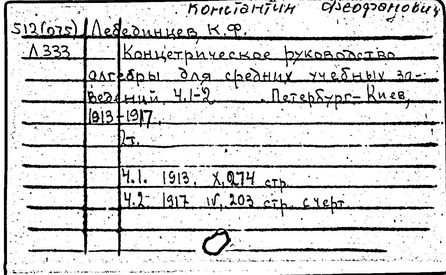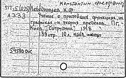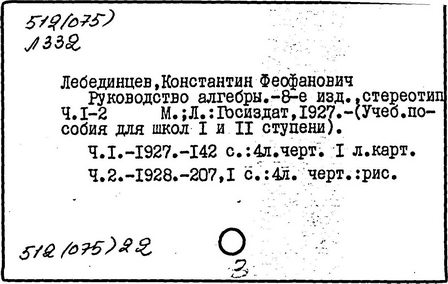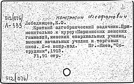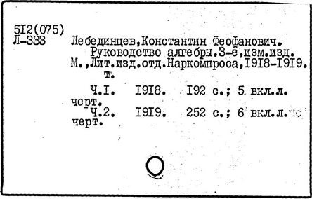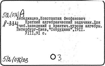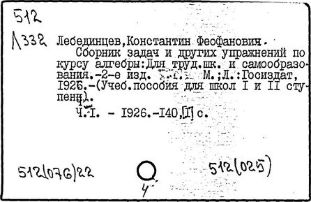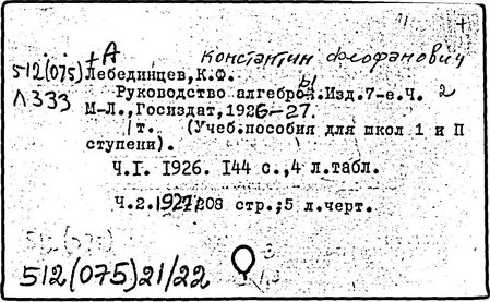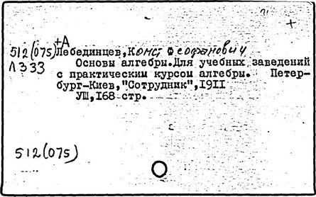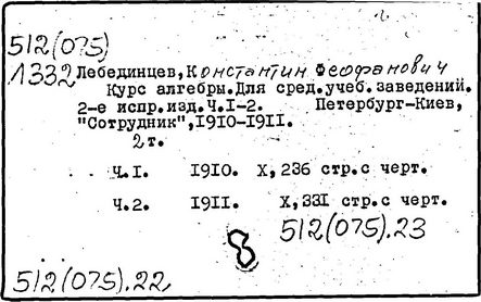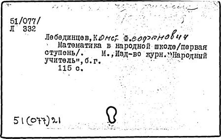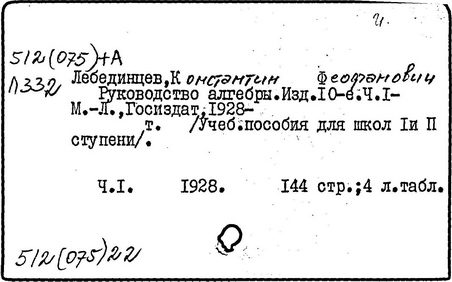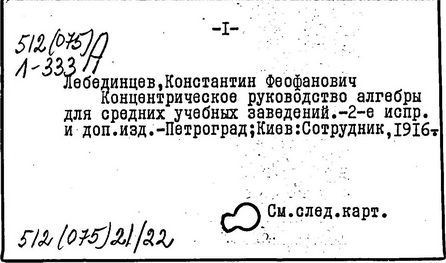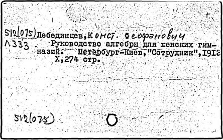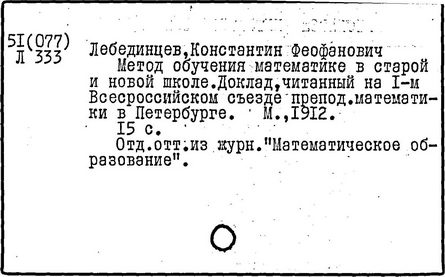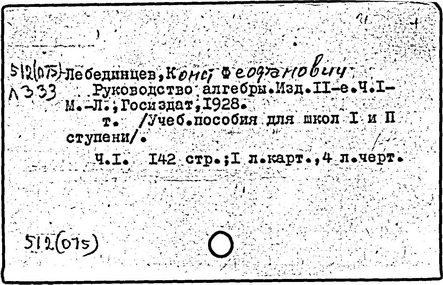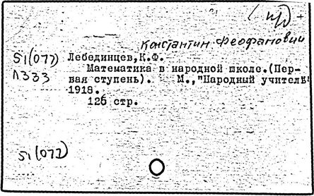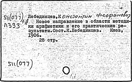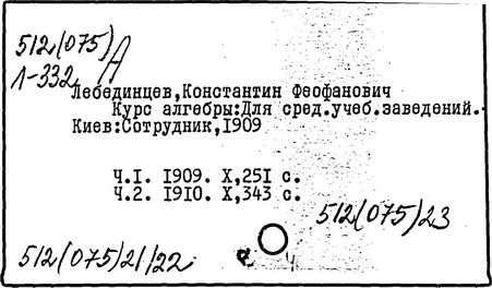 Литература: Pупасов К. А. К. Ф. Лебединцев // Математика в школе. – 1954. – № 1; Андронов И. К. Полвека развития школьного математического образования в СССР. – М., 1967. – С. 122 - 127.