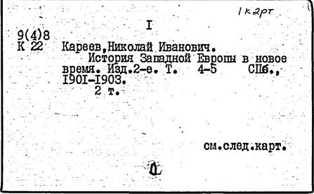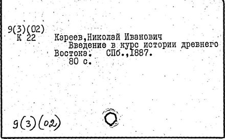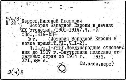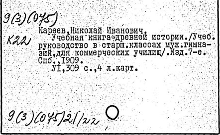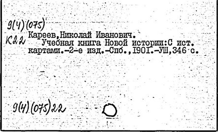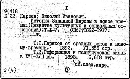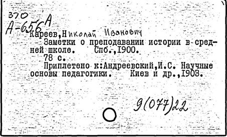 историк, педагог и методист, почетный член АН СССР (1929; член-корреспондент Петербургской АН с 1910). Родился в Москве. Окончил историко-филологический факультет Московского университета (1873). Преподавал в московских гимназиях; профессор Варшавского (1879-1884) и Петербургского (1885-1899, с 1906) университетов. До 1917 занимал ведущее место в разработке методики преподавания истории. По инициативе Кареева школьной методикой истории занялись члены исторического общества при Петербургском университете. Эти проблемы были включены в программу "Научно-исторического журнала" (1913-1914). Кареев впервые прочитал в Петербургском университете теоретический курс по методике преподавания истории; опубликовал ряд статей и рефератов (список см.: "Историческое обозрение", т. 20, 1915, с. 212). В монографии "О школьном преподавании истории" (1917) Кареев рассмотрел его как важное общеобразовательное средство, воспитывающее умение исторически мыслить.