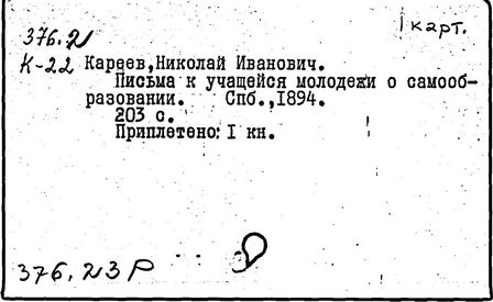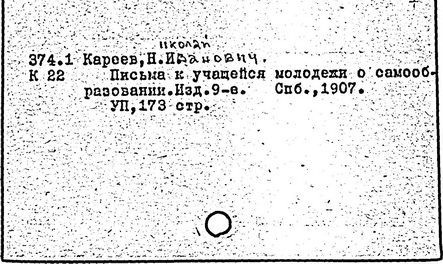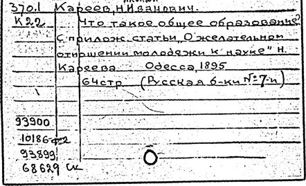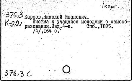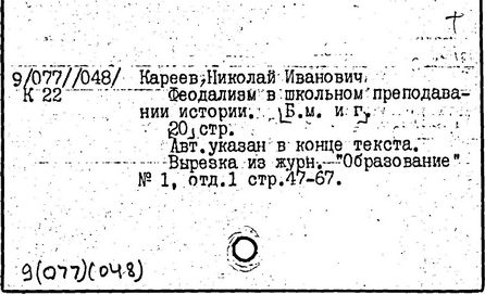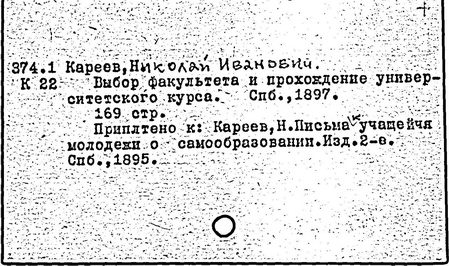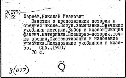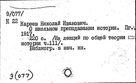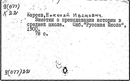 Литература: Золотарев В. П., О методология, взглядах Н. И. Кареева, УЗ МОПИ, 1965, т. 121, Истфак, в. 5; его же, Н. И. Кареев как методист, там же; Лебедев П. А., К истории вопроса о подготовке учащихся ст. классов к выбору профессии, там же, 1957, т. 50, Тр. кафедры педагогики, в. 4; Хмелев А. Н., Передовые методисты нач. XX в. О преподавании истории, ПИШ, 1959, № 5.