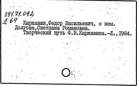 Литература: Долгова С. Р. Творческий путь Ф. В. Каржавина. Л., 1984.