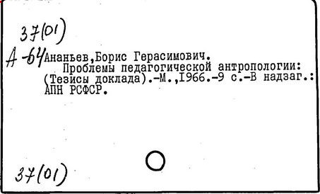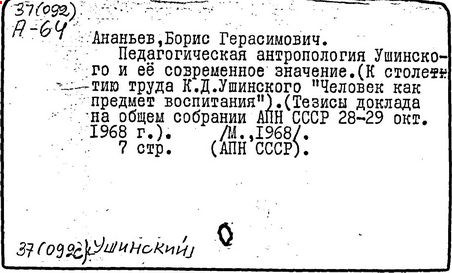 Педагогическая антропология Б. Г. Ананьева [Текст]: [совет.
