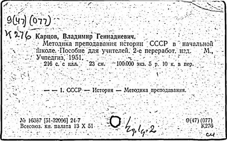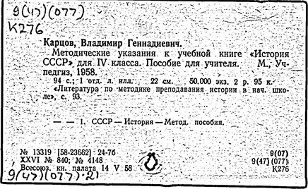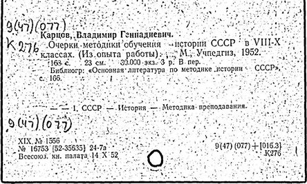 Литература: В. Г. Карцов. [Некролог], Преподавание истории в школе, 1977, № 3.