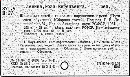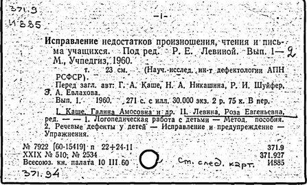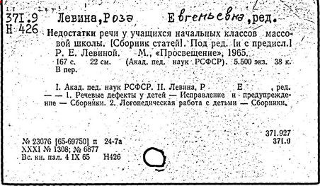 В 1959 г. выходит сборник «Вопросы логопедии» (Недостатки речи, чтения и письма у учащихся младших классов). В нем находит свое отражение общая перестройка содержания логопедической науки и ее наиболее сложного раздела – изучения и коррекции недостатков чтения и письма, связанных с нарушением устной речи. Выделение уровней отклонения компонентов речевой системы послужило основой для реализации актуального замысла – фронтального обучения и воспитания детей с расстройствами речи. Под этим углом зрения в период 60-70 гг. были осуществлены методические разработки научно обоснованных путей преодоления общего недоразвития речи.