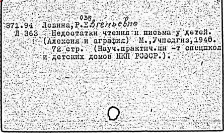В 1961 г. Р.Е. Левина завершает обширное исследование, которое представляет в виде докторской диссертации и монографии, – «Нарушения письма у детей с недоразвитием речи». Нарушения чтения и письма у детей с недоразвитием речи (алексия и дислексия, аграфия и дисграфия) трактуются ею как дефекты, связанные, в первую очередь, с недостаточностью фонематических и морфологических обобщений, в современном понимании с фонологическим дефицитом. Излагается принципиально новый подход к исправлению аграфии и алексии путем устранения отклонений речевого развития и формирования полноценных фонематических и морфологических обобщений. Итогом значительного периода научной деятельности Р.Е. Левиной является книга «Основы теории и практики логопедии» (1968 г.), написанная коллективом сотрудников под ее руководством.