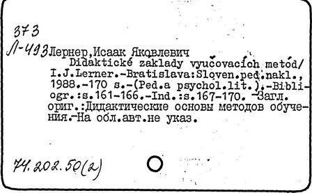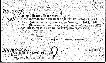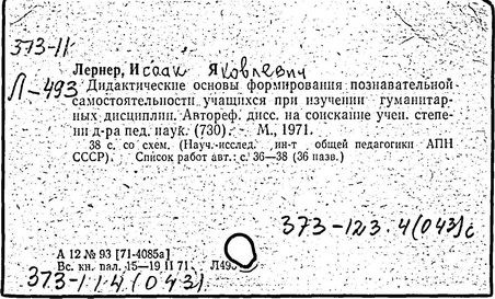 педагог, академик Российской академии образования (1992 г., член-корреспондент Академии педагогических наук СССР с 1990 г.), доктор педагогических наук (1971 г.), профессор (1990 г.). Заслуженный деятель науки РСФСР (1987 г.). Родился в Деражне, ныне в Хмельницкой области Украины. В 1939 г. окончил исторический факультет МГУ. С 1937 г. преподавал в педагогических вузах Москвы, Мичуринска, Воронежа и др. С 1959 г. в системе Академии педагогических наук: в 1964-1970 гг. возглавлял лабораторию дидактики гуманитарного образования, а в 1972-1974 гг. - лабораторию формирования мировоззрения в НИИ общего и политехнического образования. С 1970 г. в лаборатории общих проблем дидактики НИИ общей педагогики. Лернер развил теорию проблемного обучения. Раскрыл дидактические основы и разработал систему методов обучения, которая охватывает информационно-рецептивный, инструктивно-репродуктивный, эвристический, исследовательский, проблемного изложения и метод соотнесения каждого акта обучения с потребностями и мотивами учащихся. Раскрыл связь между методами обучения, организационными формами, средствами и приёмами обучения. Обосновал состав и структуру содержания образования, адекватные социальному опыту, выделив в них кроме знаний, умений и навыков опыт творческой деятельности и опыт эмоционально-ценностного отношения к миру. В 1985-1989 гг. разработал целостную концепцию учебно-воспитательного процесса как системы. Предложил концепцию базового содержания общего образования (1990-1991 гг.). В 1985- 1991 гг. руководил разработкой теории построения современного школьного учебника.