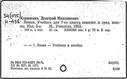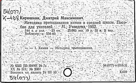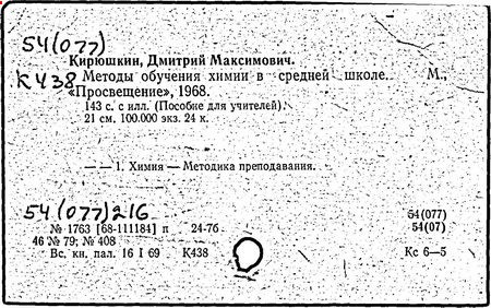 Литература: К юбилею методиста-химика Д. М. Кирюшкина // Химия в школе. – 1965. – № 3; Памяти Д. М. Кирюшкина: [Некролог] // Химия в школе. – 1978. – № 5.