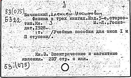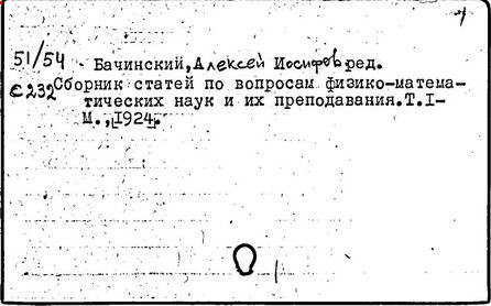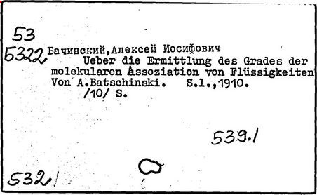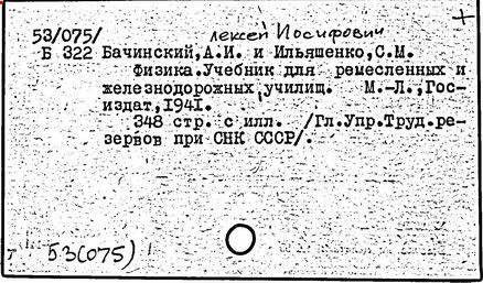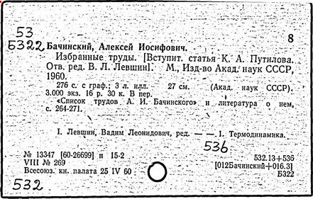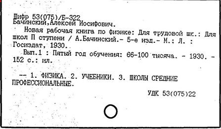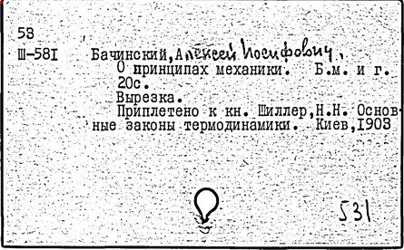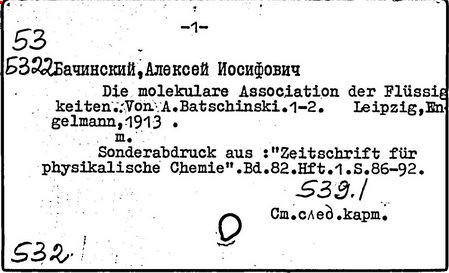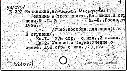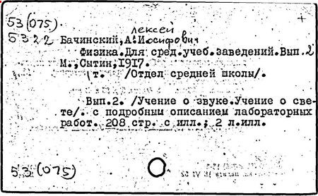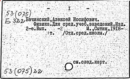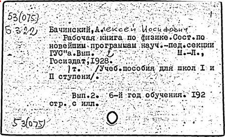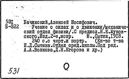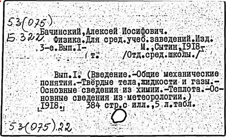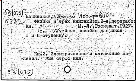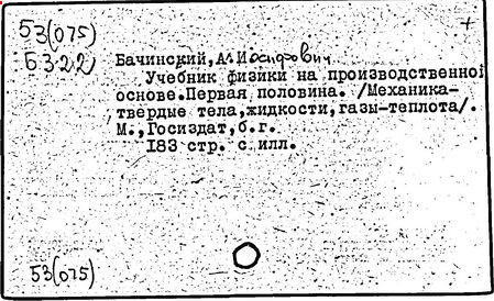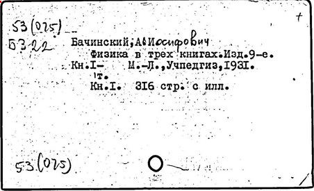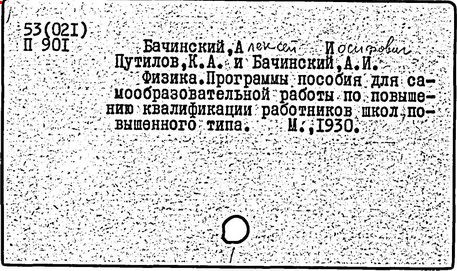 физик, методист, доктор физико-математических наук (1934 г.), профессор (1918 г.). Место рождения - г. Холм, ныне Хелм (Польша). Окончил Московский университет (1899 г.), преподавал там же. Одновременно читал лекции в различных вузах, до 1917 преподавал в средних учебных заведениях. Основные труды по физике касаются молекулярной физики и термодинамики; открыл закон вязкости жидкостей, носящий его имя (1912-13 гг.). Участвовал в организации первого советского научно-методического, центра - Центрального физико-педагогического института (1919 г.), в разработке школьных программ по физике. Автор многих учебников, отличавшихся высоким для своего времени научным уровнем, широким применением физического эксперимента, что способствовало повышению качества знаний учащихся. В учебниках "Физика для средних учебных заведений" (в. 1-3, 1915-18 гг.) и "Физика в трёх книгах" (1925 г.; 1931 г.) впервые для объяснения физических явлений последовательно использовались положения молекулярно-кинетической и электронной теорий, большое место уделялось законам сохранения; важным методом изложения учебного материала служил тщательно разработанный эксперимент. Связь теории с практикой устанавливалась через целесообразно подобранные, чётко и ясно описанные опыты и примеры из техники, жизни природы, повседневной практики. Учебники и учебные пособия, созданные Бачинским, издавались вплоть до появления в начале 30-х гг. стабильных учебников по физике и оказали значительное влияние на преподавание физики в средней школе. Бачинский - автор одного из первых задачников по физике для школ 2-й ступени (1923 г., 1928 г.), а также соавтор справочников по этому предмету для учителей и учащихся (1928 г., 1941 г., 1951 г.). Инициатор выпуска и научный редактор "Рабочей школьной библиотеки" (1926-31 гг.) - серии книг по физике и технике для учащихся. Автор статей по истории и философии естествознания, истории техники.