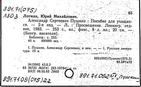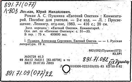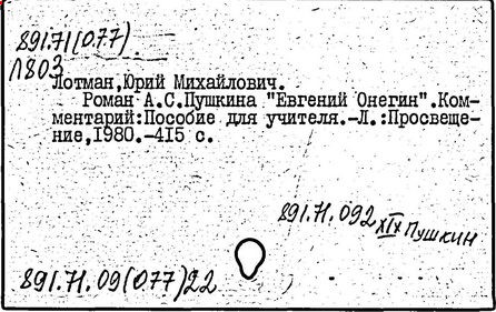 Развитие творческих способностей, исследовательской самостоятельности детей, углубление нравственных и эстетических воздействия литературы Лотман связывает со сближением школьной практики и современной науки, с овладением учителем научной методикой анализа текстов (как в историческом, так и в теоретическом аспектах). Подобный подход отражают работы об А. С. Пушкине (премия им. А. С. Пушкина Российской академии наук, 1992 г.): "Комментарий к роману "Евгений Онегин"" (1983 г.) и "А. С. Пушкин. Биография писателя" (1981 г.). В "Комментарии", помимо общих статей, раскрывающих внутреннюю хронологию романа, историю его создания, особенности дворянского быта эпохи, сочетаются два вида толкований: собственно текстуальные (раскрывающие смысл архаичных слов, утраченных реалий, литературных реминисценций и т. п.) и концептуальные (анализирующие идейно-художественные функции слов и тропов, логику становления характеров персонажей, особенности структуры произведения, своеобразие авторской позиции).