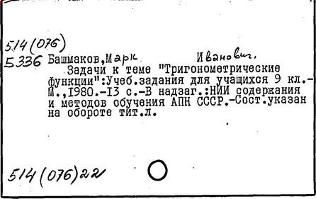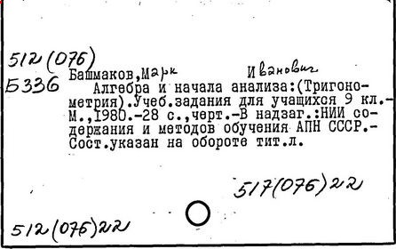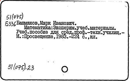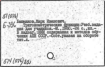 Контроль за ходом и результатами обучения математике [Текст]/ М. И. Башмаков //