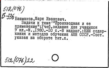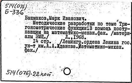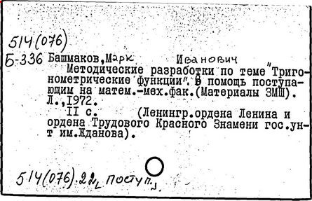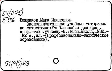 М. И. Башмаков // МАТЕМАТИКА В ШКОЛЕ. -М.: Школ. Пресса, 2010. -№ 5. - C.37-42. -