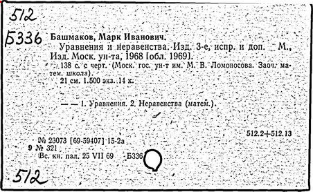 Алгебра [Текст]: учеб. для 7 кл. общеобразоват. учреждений/ М. Башмаков. -