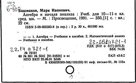 М.И. Башмакова "Алгебра и начала анализа. 10-11 классы", при изучении