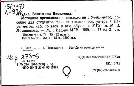 для студентов фак. психологии гос. ун-тов/ В.Я. Ляудис. -М.: Учеб.-метод.