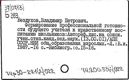 13.00.01/ В. П. Бездухов; Ин-т образзования взрослых
