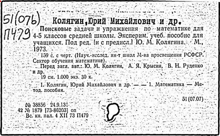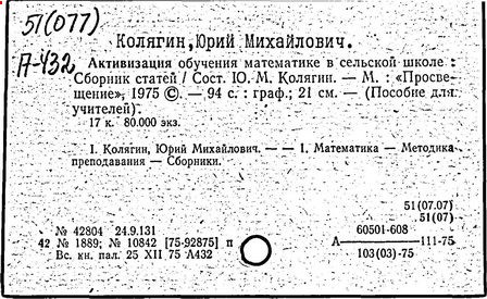 [Текст]/ Ю. М. Колягин [и др.] // МАТЕМАТИКА В ШКОЛЕ. -М.: Школ. Пресса, 2007. -