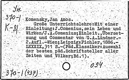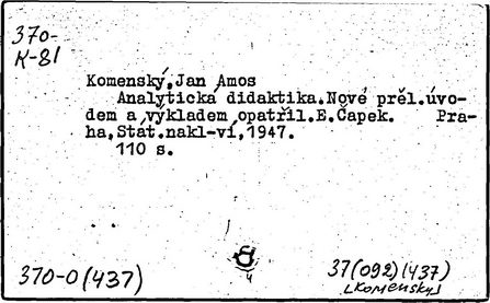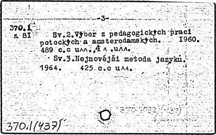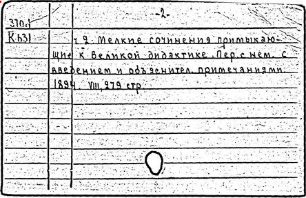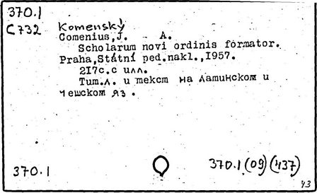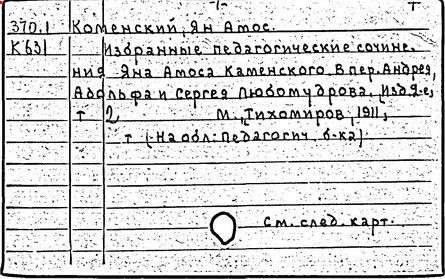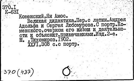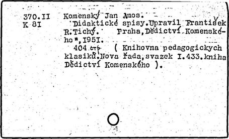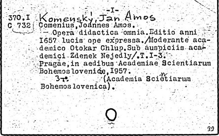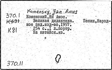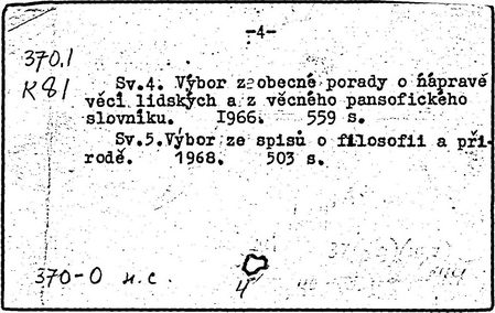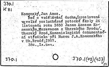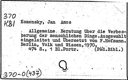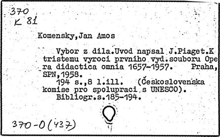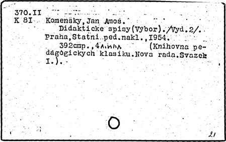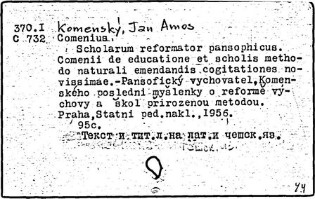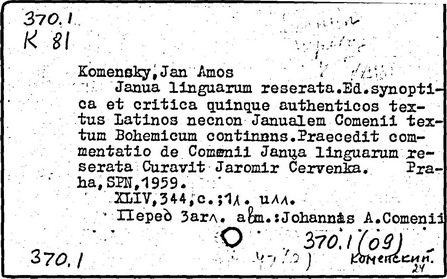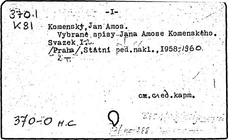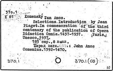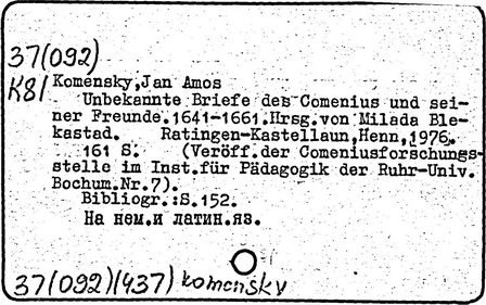 Литература: Красновский А. А., Я. А. Коменский, М., 1953; Материалы научной сессии Академии педагогических наук РСФСР, посвященной 300-летию опубликования Собрания дидактических трудов Я. А. Коменского, М., 1959; Джибладзе Г. Н., Философия Коменского, М., 1982; Кратохвил М. В., Жизнь Яна Амоса Коменского, пер. с чеш., М., 1991; Popelova J., Коmenskeho cesta k vsenaprave, Praha, 1958: Blekastad M., Comenius, Praha - Oslo, 1969; Сapkova D., Nektere zakladni prmcipy pedagogickeho mysleni J. A. Komenskeho, Praha, 1977; Otazky soucasne komenilogie, Praha, 1981; Sympozium Comenianum 1982, Uhersky Brod, Comenius Institute od Education Praha, Comenius Muzeum in Uhersky Brod, 1984; Acta comeniana, Praha, 1940.