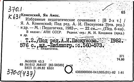 Источник: Российская педагогическая энциклопедия: в 2 тт. / гл. ред. В. В. Давыдов. — М.: «Большая Российская энциклопедия», Т. 1, 1993, с. 454-455.