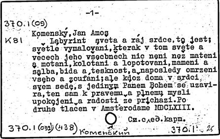 Коменский - ведущий представитель чешской реформаторской церкви, в ходе 30-летней войны он вынужден был скрываться в Чехии и Моравии. В этот период Коменский написал ряд исторических работ и литературно-философский трактат "Лабиринт света и рай сердца" ("Labirint sveta a raj srdce", 1623), в котором отразилась общественно-критическая позиция Коменского. Острая общественная сатира в "Лабиринте..." дополняется оптимистичной картиной гармоничного общества ("Рай сердца").