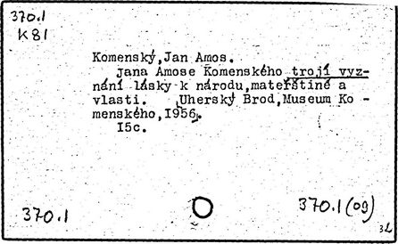 Ещё в период учёбы Коменский собрал огромный языковой материал к книге "Клад чешского языка" (рукопись сгорела в 1656 г.), пытался создать своего рода универсальную энциклопедию "Театр всевозможного" ("Theatrum universitatis rerum"), пробовал себя в духовной поэзии, занимался теорией чешского стихосложения.