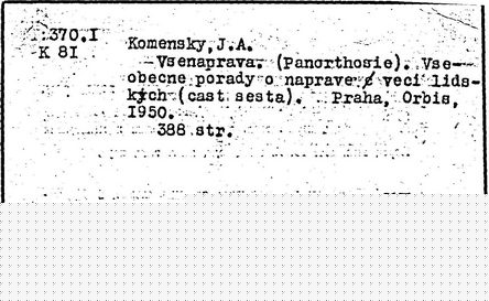 Для повышения эффективности всеобщего воспитания, обеспечения мира и сотрудничества между народами Коменский предлагал создать универсальный язык, на котором будет развиваться национальная культура, - "Всеобщий язык" ("Панглотия"). "Всеобщее исправление" ("Панортосия") завершает проект всеобщего и полного преобразования, в первую очередь главных сфер деятельности человека (философии, политики, религии). При этом Коменский подчёркивал связь между самоисправлением каждого отдельного человека и исправлением главных социальных институтов (семьи, школы, церкви, государства), требовал соблюдения правильного соотношения между свободой и порядком. Осуществлению всеобщего исправления должны помочь всемирные институты, обеспечивающие сотрудничество и мир между народами: международная организация учёных для сотрудничества в области науки и воспитания, международная консистория (некий всемирный совет церквей) и международный суд для мирного решения спорных политических вопросов. Заключительная часть "Всеобщего Совета" - "Всеобщее поощрение" ("Паннутесия") призывает к работе, направленной на универсальное социальное исправление. Коменскому удалось издать лишь вступительную часть своего труда-утопии, ряд глав рукописи не были завершены (в полном объёме издана в 1966 г. в Праге).