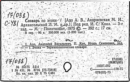 И.С. Кон; Акад. наук СССР, Ин-т этнографии им. Н.Н. Миклухо -
