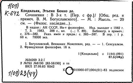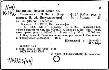 Литература: Ге Ф., История образования и воспитания, М., 1912; Богуславский В. М., Этьенн Бонно де Кондильяк, М., 1984; Lenoir R., Condillac, Р., 1924; Lefevre R., Condillac, Р., 1966.