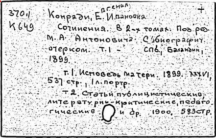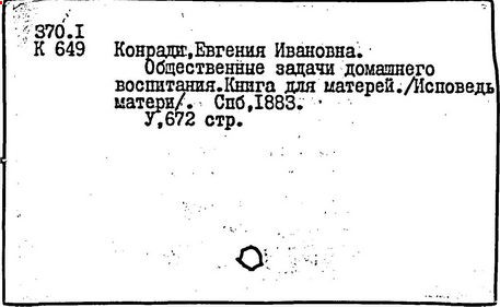 Литература: Сватиков Ф. Ф. Е. И. Конради о воспитании детей дошкольного возраста // Дошкольное воспитание. – 1942. – № 9; Чувашев И. В. Очерки по истории дошкольного воспитания в России. М., 1955.