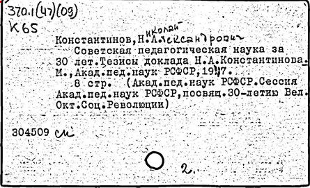 Источник: Табаева М. Ф. Н. А. Константинов: (к 80-летию со дня рождения) // Советская педагогика. – 1974. – № 5; Равкин 3. Н. А. Константинов // Советская педагогика. – 1984. – № 5.