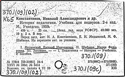 истории педагогики АПН РСФСР/ отв. ред. Н. А. Константинов. -