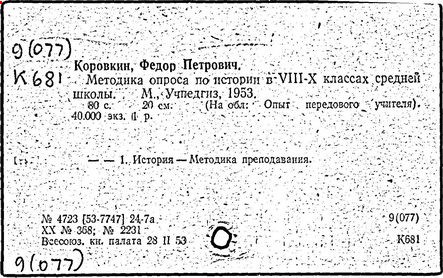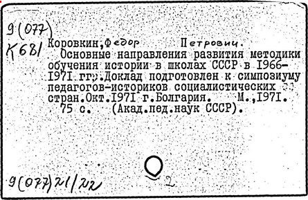 Литература: Сахаров А. М. Лауреаты Государственной премии СССР 1973 года: [Ф. П. Коровкин] // Преподавание истории в школе. – 1974. – № 2; Ф. П. Коровкин // Преподавание истории в школе. – 1982. – № 2.