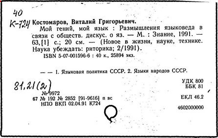 В.Г. Костомаров.- М.: Гос. ин-т рус. яз., 2000.- 63 с.