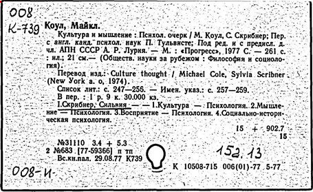 Основатель (с 1978 г.) и многолетний директор Лаборатории Сравнительного Изучения Познавательных Процессов, объединяющей ученых из многих стран мира. Проводимые в рамках этой лаборатории кросс-культурные исследования на стыке психологии, этнографии, антропологии, лингвистики, привели к созданию оригинальной теории культурного опосредования психики.