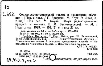 Являющаяся итогом многолетней работы книга "Культурно-историческая психология: наука будущего" получила в 1996 г. премию издательства Гарвардского университета как выдающееся произведение в области педагогических и общественных наук.