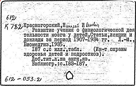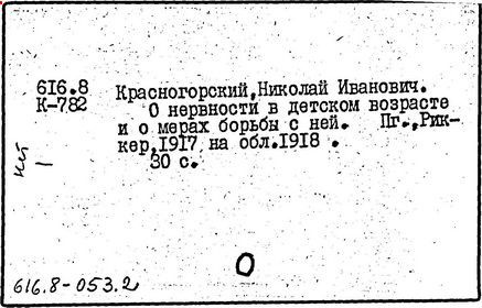 Литература: Махтингер А.И., К 50-летию научной, врачебной, педагогической и общественной деятельности и 75-летию со дня рождения Н. И. Красногорского, "Педиатрия", 1958, № 9; его же, Памяти Н. И. Красногорского, "Журнал невропатологии и психиатрии", 1962, т. 62, № 10.