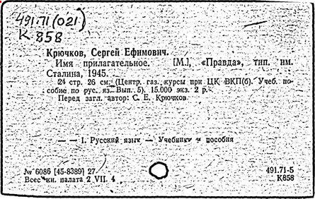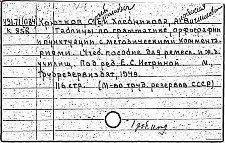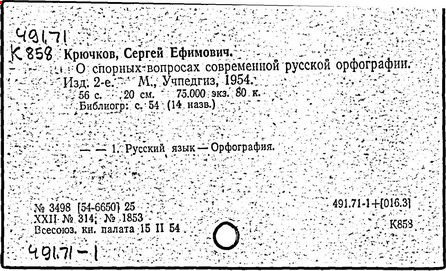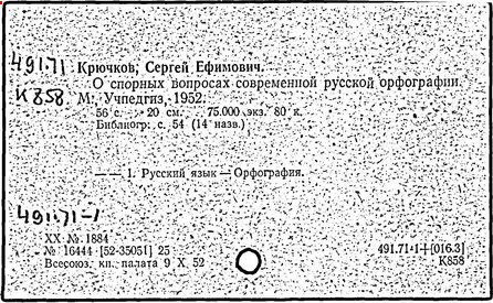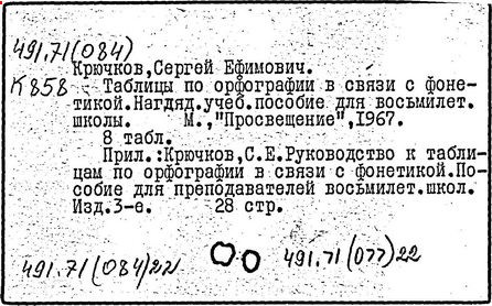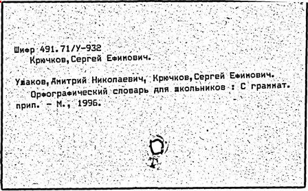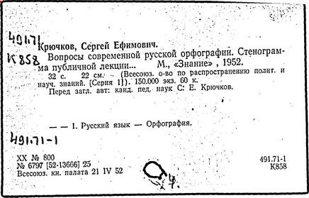 Практическое применение получили также исследования Крючкова в области орфографии ("О спорных вопросах современной русской орфографии", 1952-1954). Крючков совместно с Д. Н. Ушаковым составил школьный "Орфографический словарь" (1990). Использованная в нём система помет и указаний форм слов в сложных для письма случаях в дальнейшем легла в основу большого орфографического словаря Академии наук СССР (в работе над которым принимал участие и Крючков).