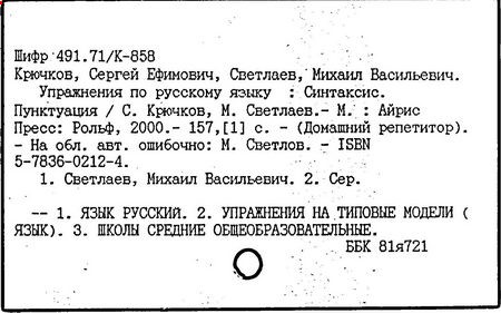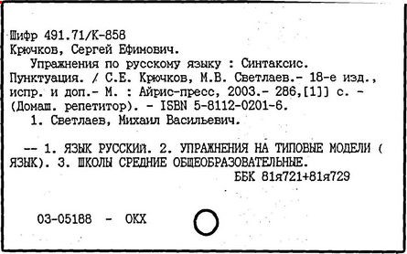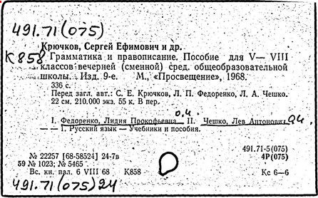 Особенностью учебников Крючкова является дифференциация учебного материала, продуманная система упражнений, тесная связь с курсом литературы. Новые научно-методические принципы преподавания реализованы в учебнике русского языка для педагогических училищ (ч. 1-2, 1980, в соавторстве с А. М. Земским, М. В. Светлаевым), в котором впервые было дано систематическое изложение морфологии, лексикологии и синтаксиса. Крючков - также соавтор учебников русского языка для очного и заочного обучения взрослых, для учащихся, не владеющих русским языком, для глухонемых и др.